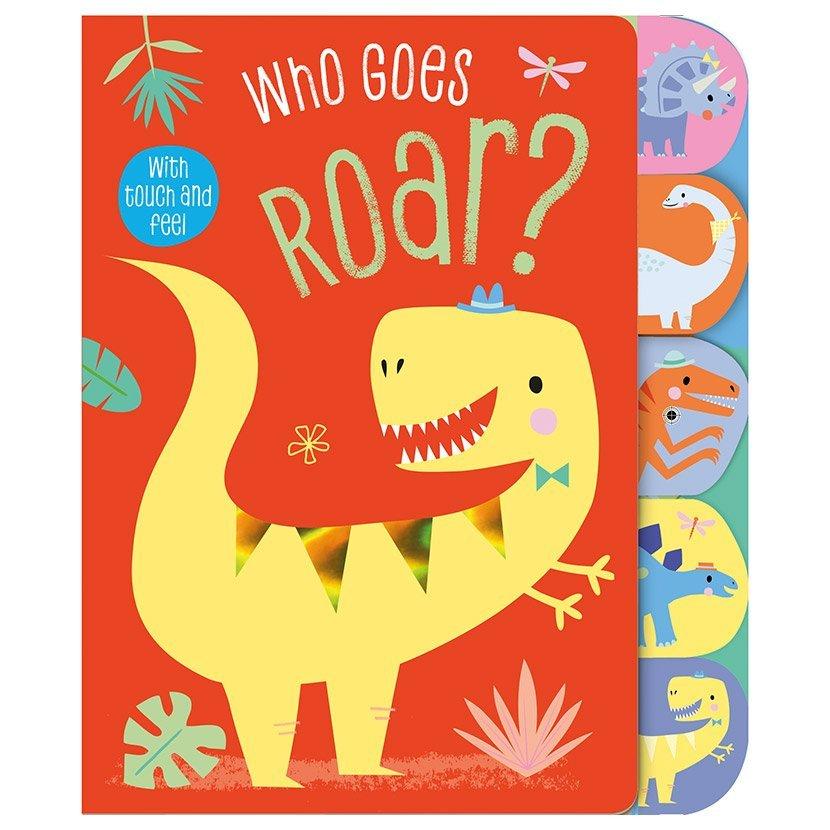 Introducing the newest title in our ever-popular tabbed format: Who Goes Roar? Children will love using the tabbed pages to work their way through the book and find the dinosaur that goes 'roar!' Rhyming text, touches throughout, and Shannon Hays' roar-some illustrations are sure to engage little ones as they read!