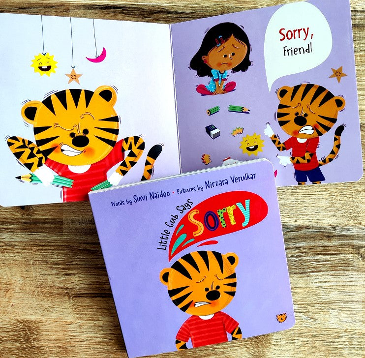 Little Cub has been very naughty. He pulls hair, spills milk, scares Granny, and even tears his book. But look, he is also saying sorry for doing all this, and no one is angry with him now. Learning to say sorry is an essential life skill every child needs to learn. This playful book shows children that it is easy to do so and everyone will love you just the same when you say sorry.