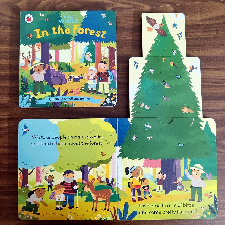 The gentle narrative is perfect for reading aloud, guiding children through the wonders of the woodland as they follow rangers, help to grow trees and watch the changing wildlife. A novelty slide, push or pull on every spread will engage children as they spend a day walking through the forest.