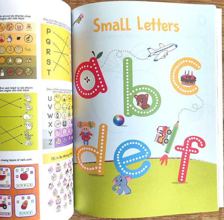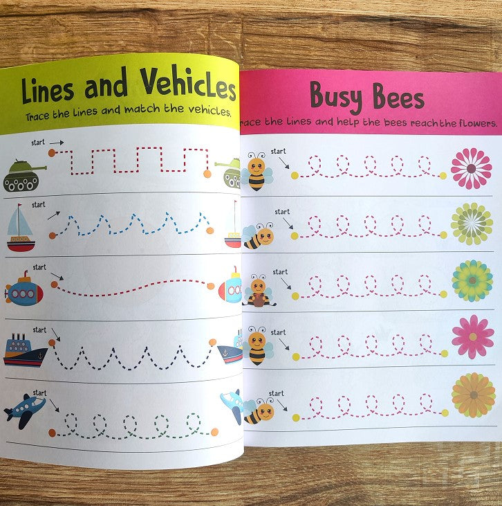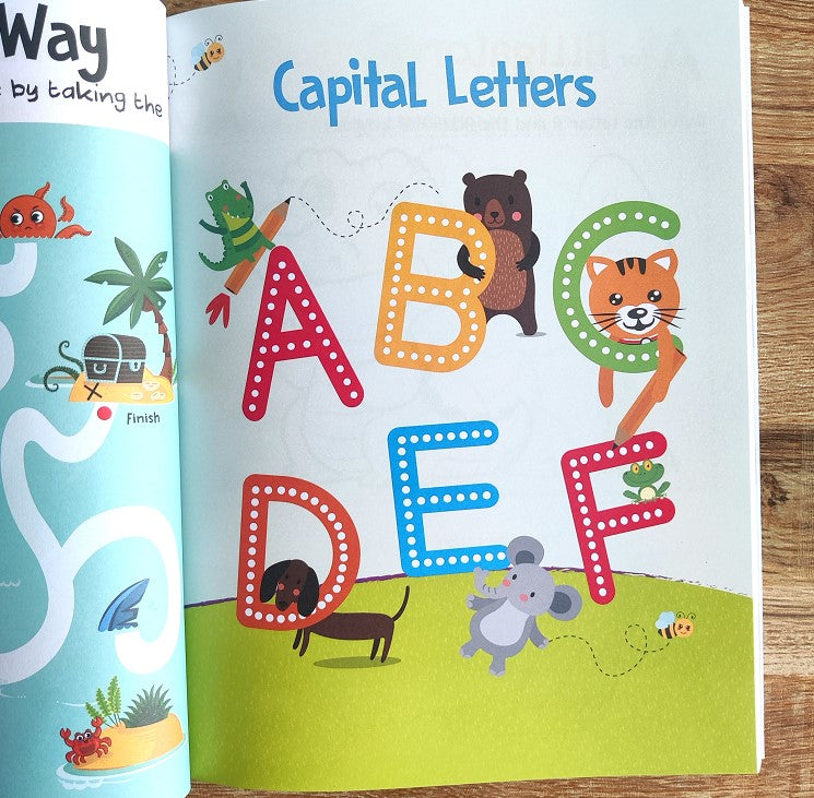 A fun activity book designed for early learners to develop pencil control and motor skills. By following the arrows and tracing the dotted lines, the little scholars can complete the tracing exercises and creative activities easily. This will lead to the development of their early writing skills. The child will also learn to identify, write and revise patterns, numbers, individual capital and small letters of the English alphabet. It is an excellent first step to prepare for school.