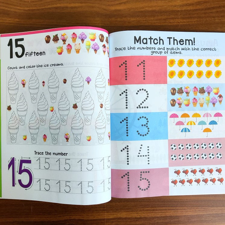 A perfect fun activity book designed for early learners to develop pencil control and motor skills. By following the arrows and tracing the dotted lines, the little scholars can complete the tracing exercises and creative activities easily. This will lead to the development of their early writing skills. The child will also learn to identify, write and revise individual numbers from 1 to 20. The book is also an excellent first step to prepare for school.