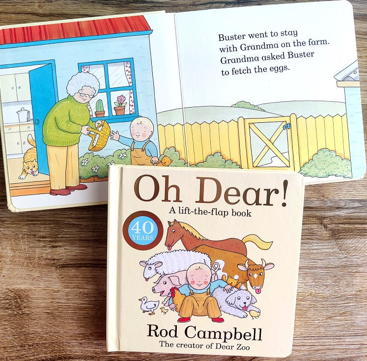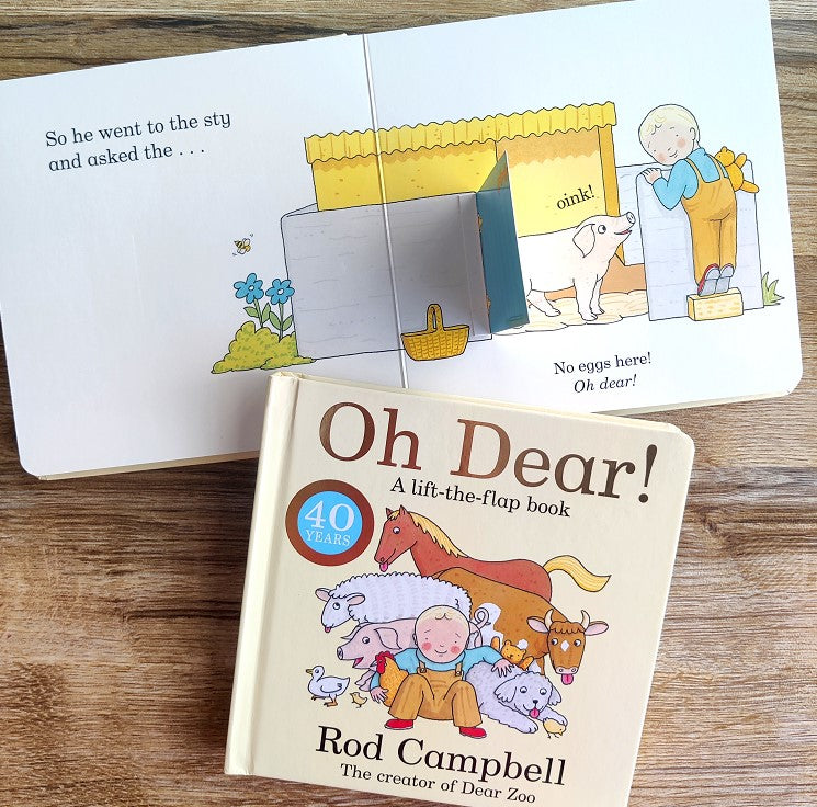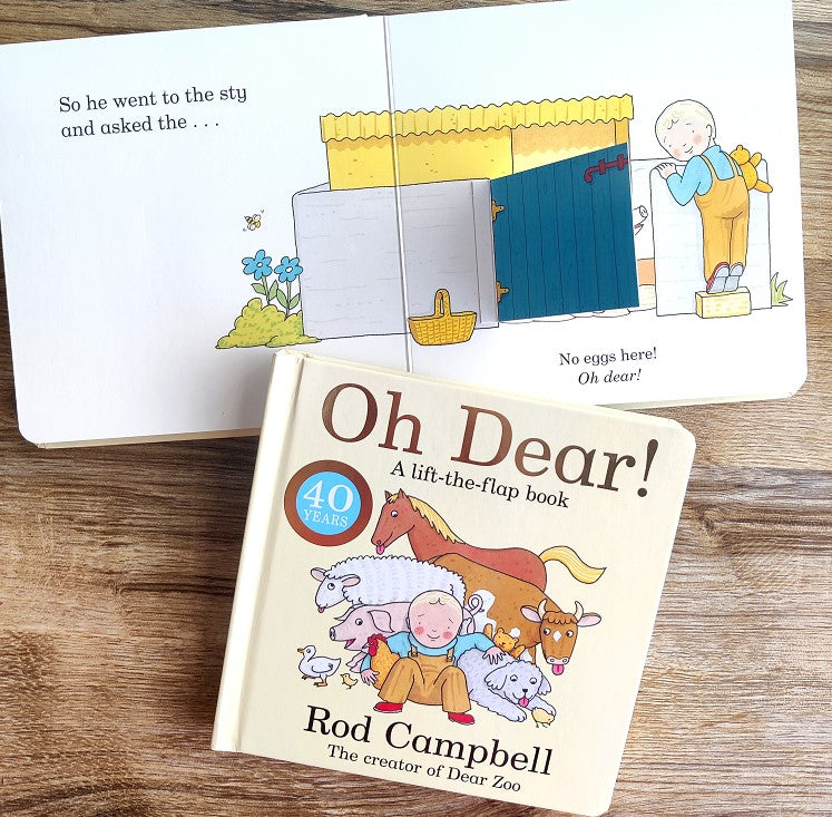 With bright, bold artwork, simple, catchy text and a whole host of favourite farm animals, Oh Dear! is a classic story to come back to again and again, and the thick board pages, chunky cased cover and sturdy flaps make it great for small hands.