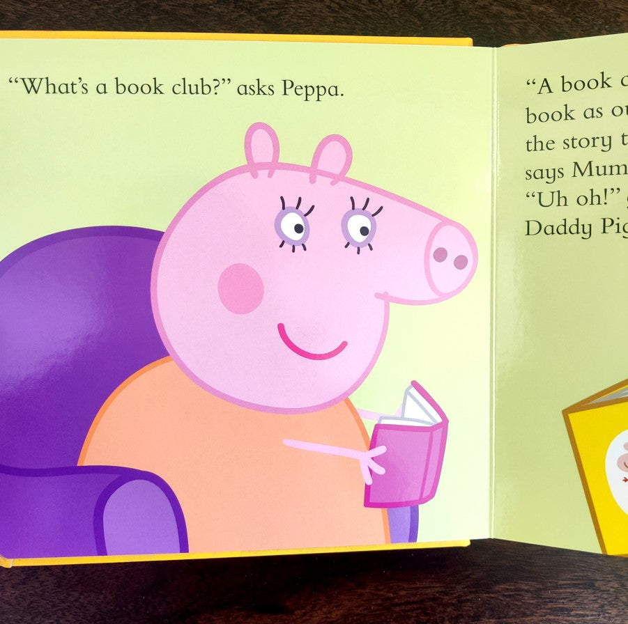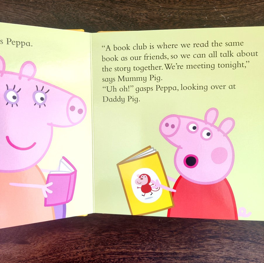 Mummy and Daddy Pig are reading the same book and Peppa finds out it's for their very exciting book club. Peppa loves reading and wants one too!