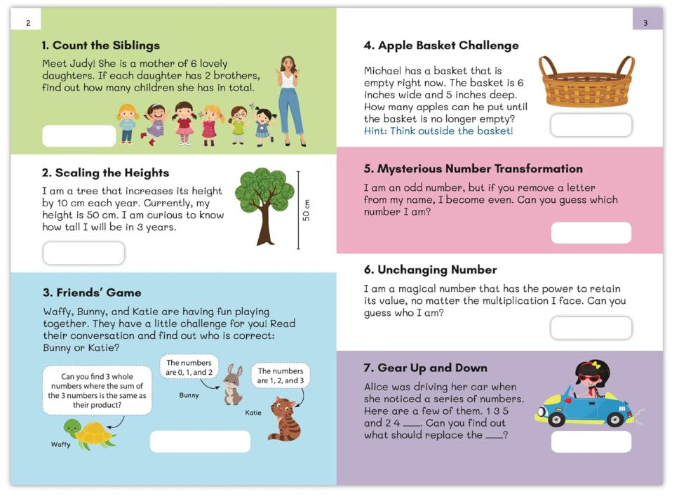 - Fun and Educational: Each riddle is thoughtfully crafted to entertain, educate, and engage kids in a world of numbers, patterns, and fun.