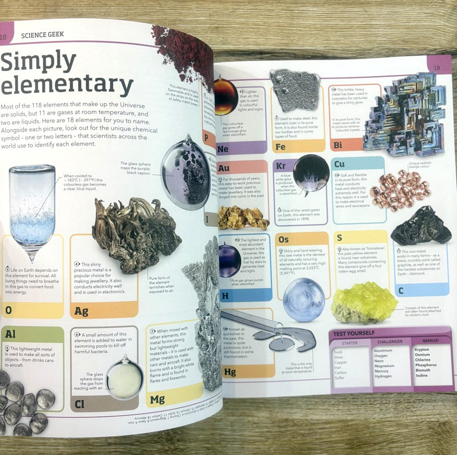 With more than 60 topics, from across the encyclopedia, there’s something for everyone. The pages are packed with eye-popping pictures – but do you know what they show? To help you, “Test Yourself” panels list what you’re looking for. With three levels of difficulty, the challenge gets harder as you work your way from Starter, to Challenger, and finally the truly tricky Genius category. If you need it, there’s a fun fact with every picture to give a helpful clue.