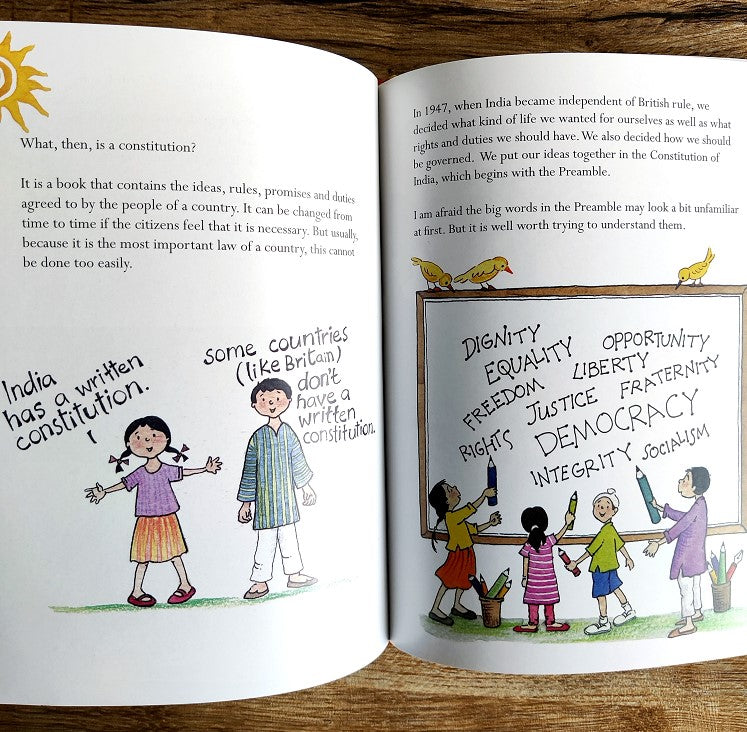Former Chief Justice Leila Seth makes the words of the Preamble to the Constitution understandable to even the youngest reader. What is a democratic republic, why are we secular, what is sovereignty? Believing that it is never too early for young people to learn about the Constitution, she tackles these concepts and explains them in a manner everyone can grasp and enjoy. Accompanied by numerous photographs, captivating and inspiring illustrations by acclaimed illustrator Bindia Thapar, and delightful bits of trivia, We, the Children of India is essential reading for every young citizen.