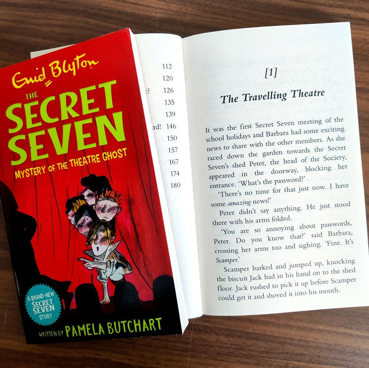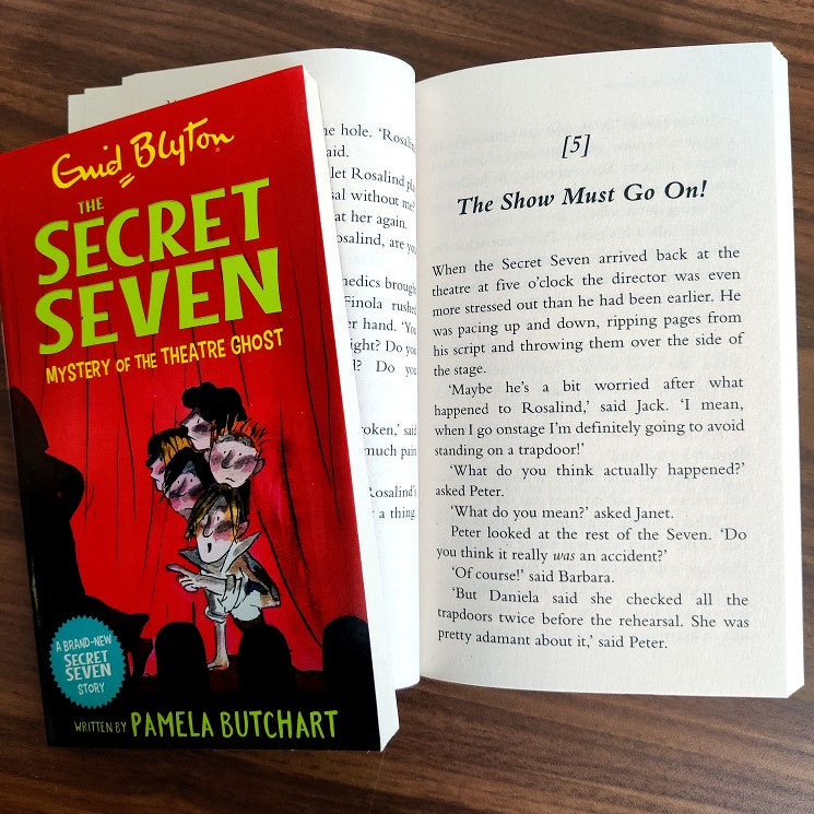 The Secret Seven are excited to be chosen as extras in a local play, but during the opening performances things go seriously wrong. Could someone be trying to sabotage? The cast and crew are adamant that a theatre ghost must be causing the mysterious accidents, but the Seven aren't convinced. It's up to the gang and their spaniel Scamper to find out who is really behind the mischief - and why!