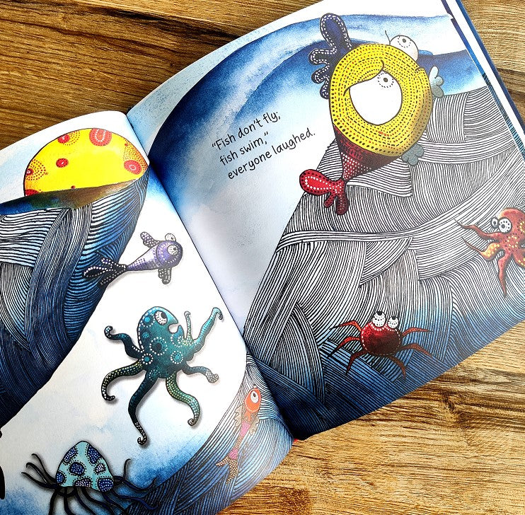 What Little Fish wants to do more than anything in this world is fly. Dissuaded by everyone around her, she nonetheless flaps her tiny fins and practices jumping. But can Little Fish ever expect to take flight?