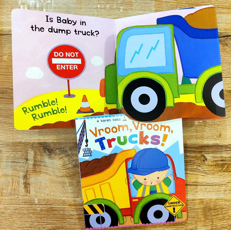 Vroom vroom! Here come the construction trucks in this new lift-the-flap book from Karen Katz featuring the cutest trucks you've ever seen.