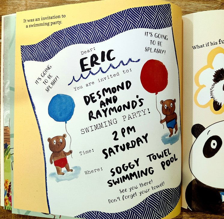 The problem is that Eric is a worrier, and nothing worries him more than the thought of swimming. So when Eric receives an invitation to a pool party, he is sent into a worrying whirl. What if his fur gets wet? What if water goes in his eyes? What if he sinks to the bottom of the pool?