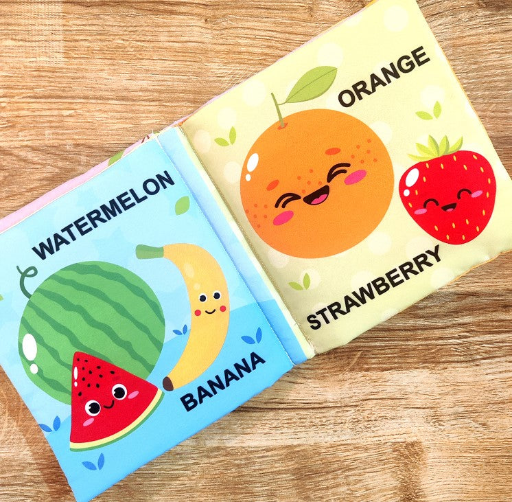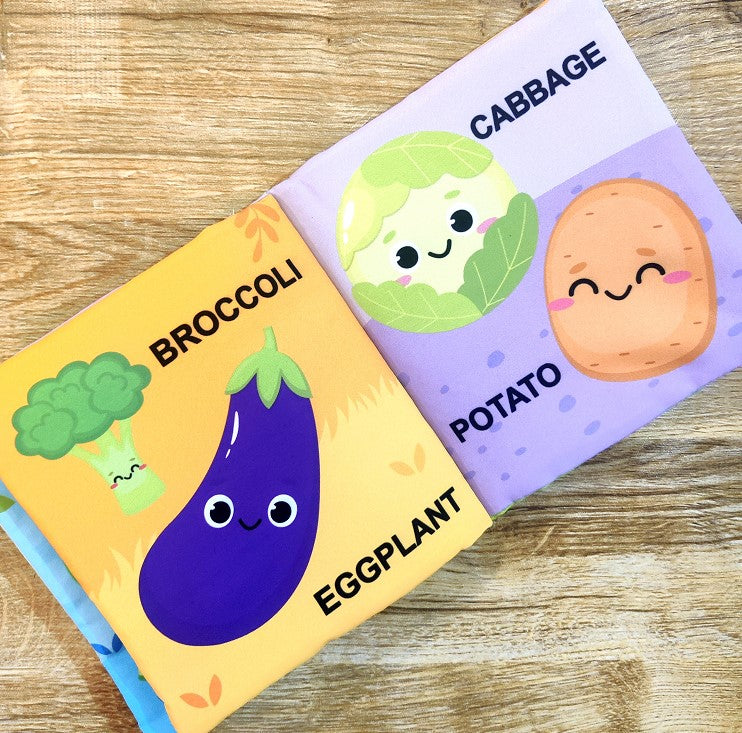 Baby My First Cloth Book Fruit and Vegetables with Squeaker and Crinkle Paper, Non-Toxic Early Educational Toy for Toddler, Infants