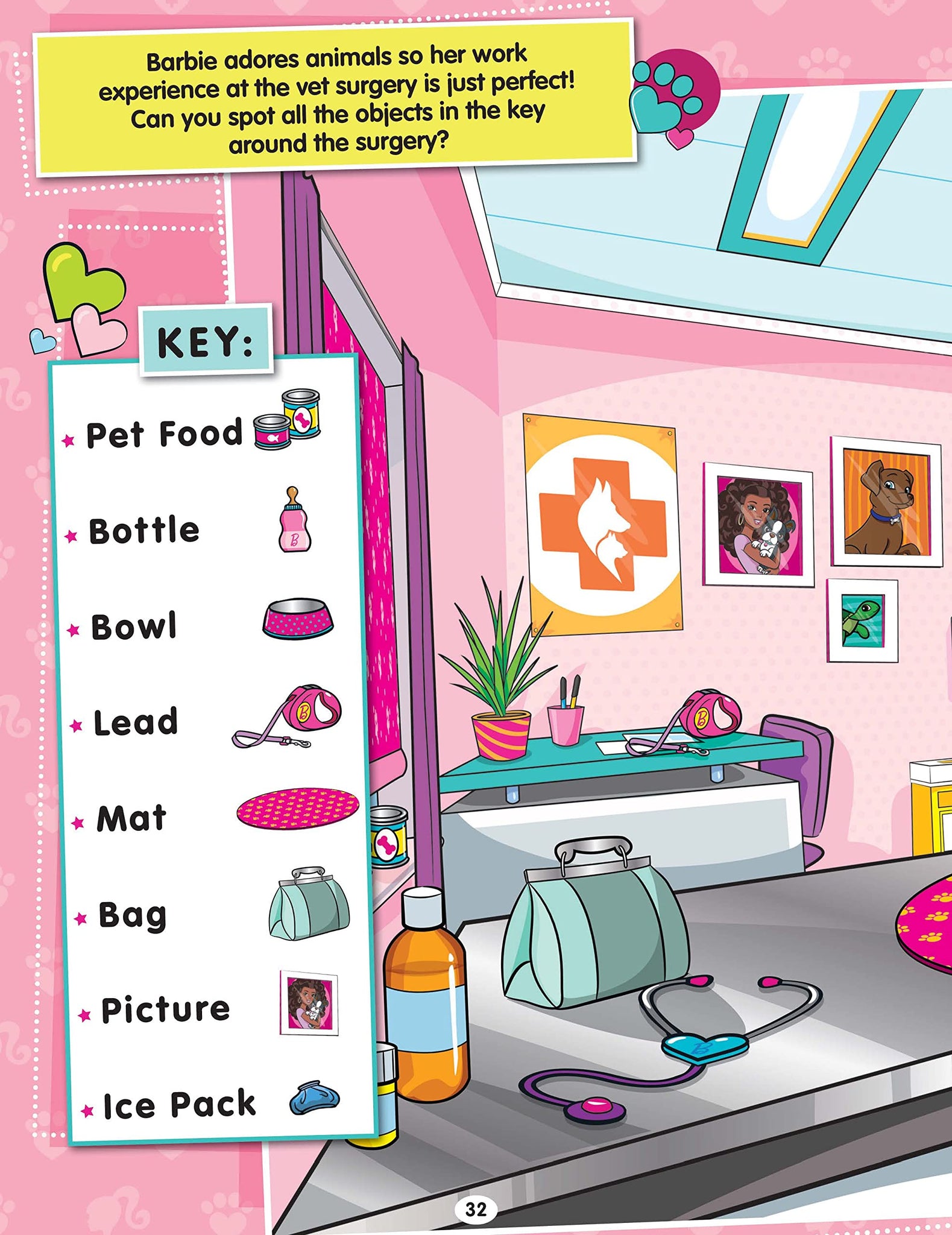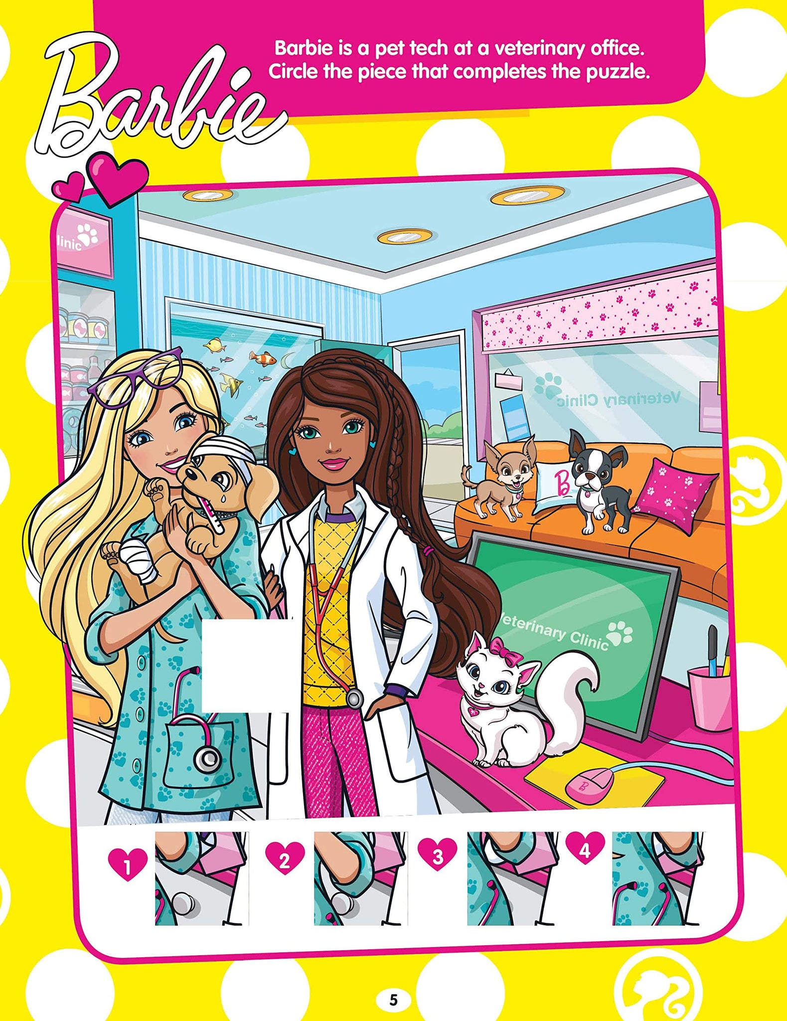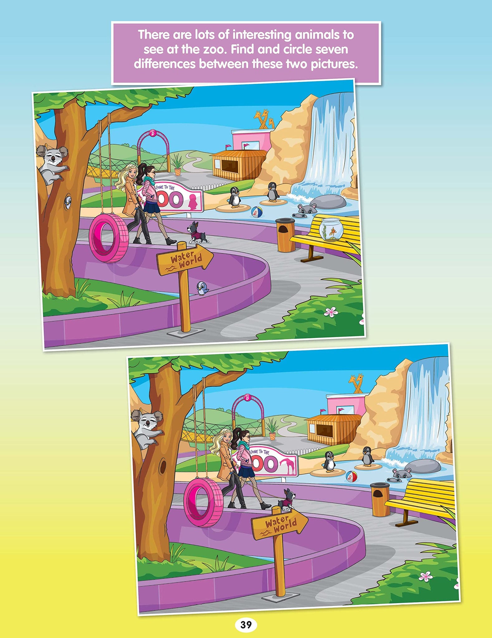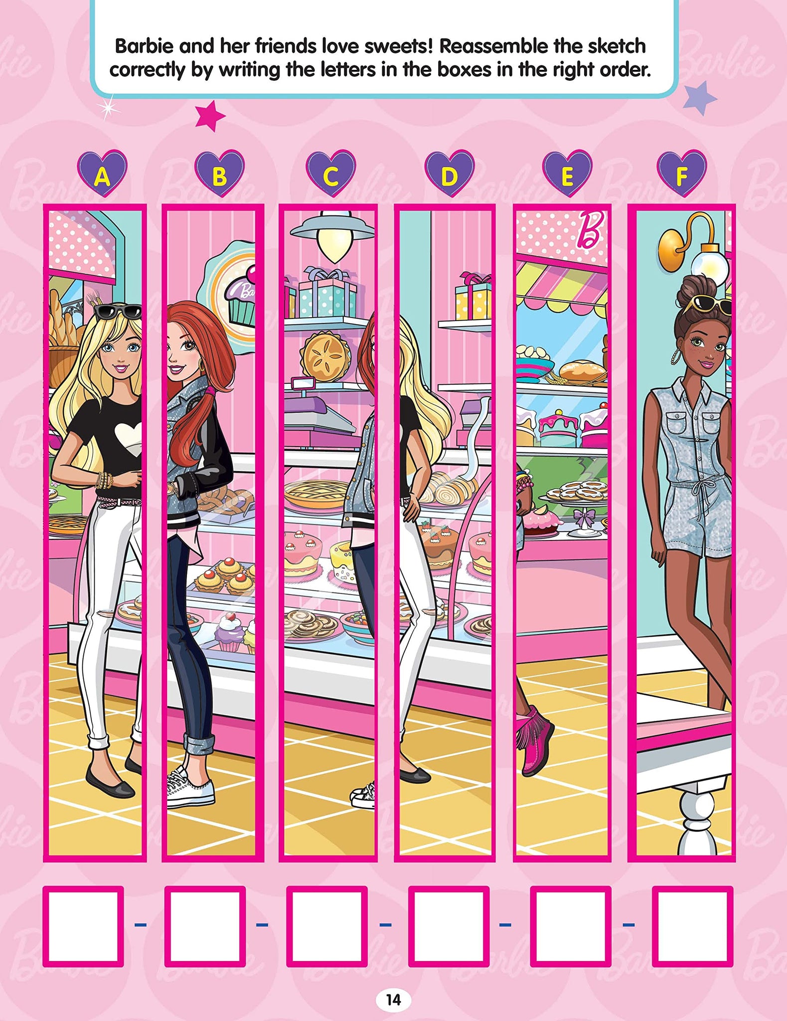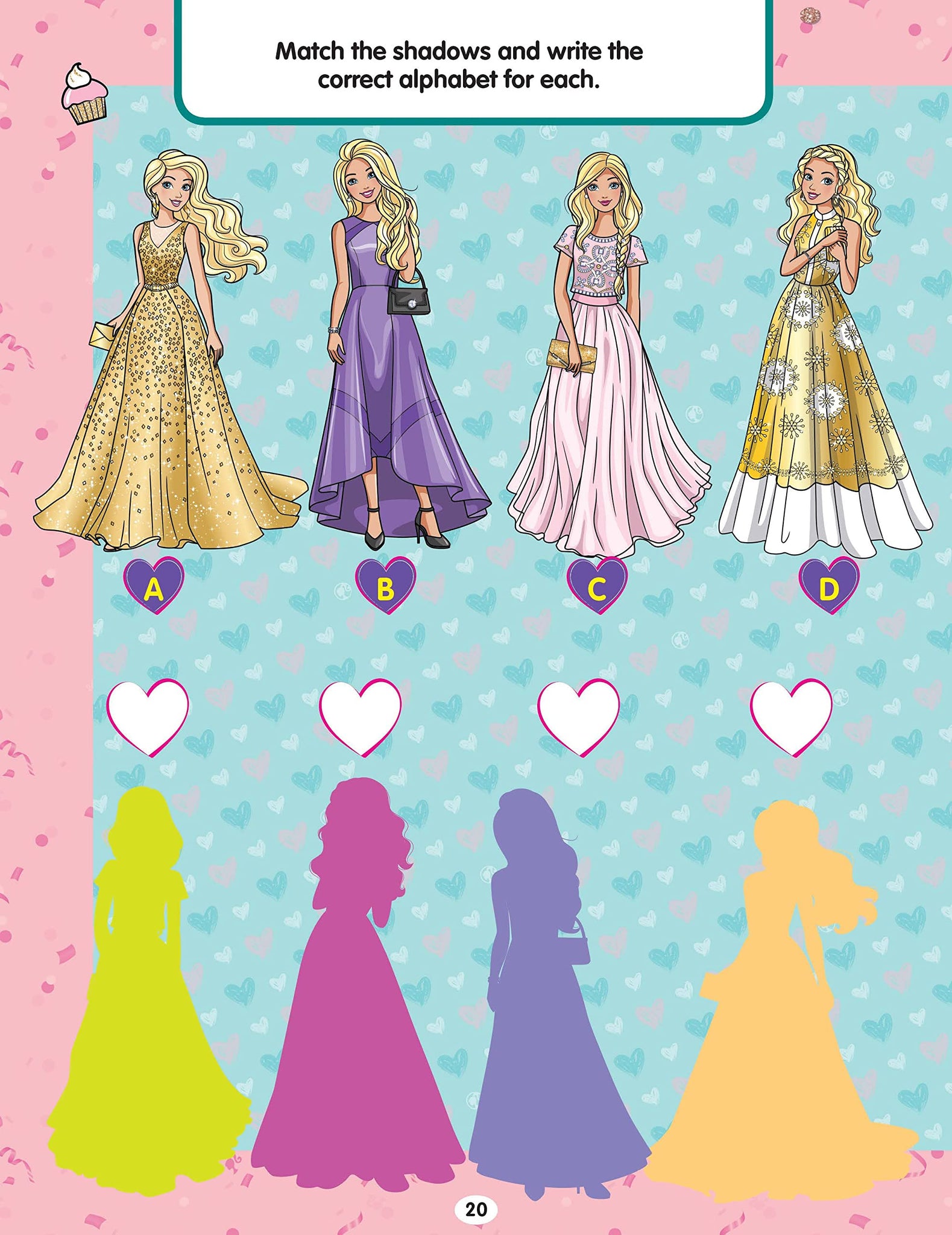 Barbie Colouring and Activity Book features full-page drawings of beautiful Barbie and her friends to provide hours of fun and creativity. This book also includes some mazes, puzzles, word search, find differences, dot to dot, etc. to both educate and entertain kids along the way as their abilities improve through practice.