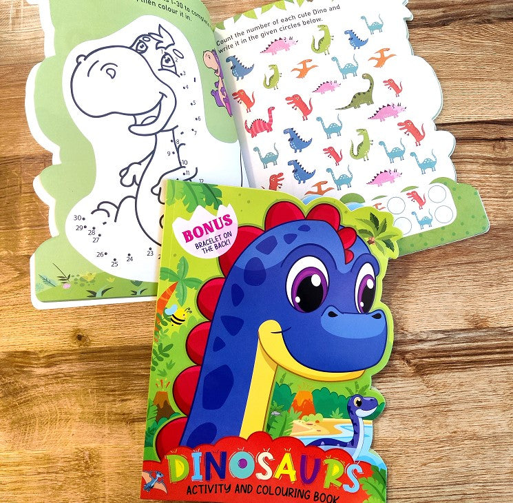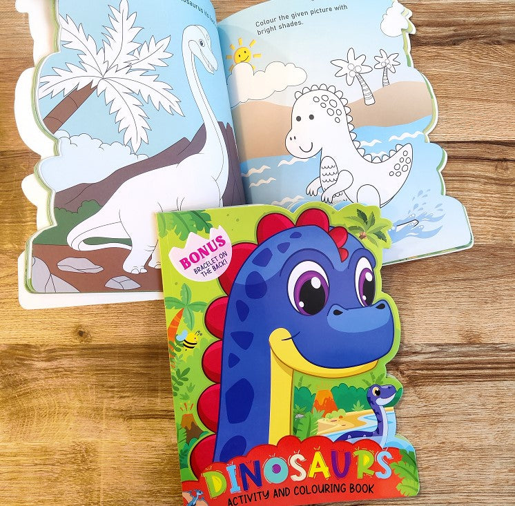 Dinosaur Activity and Colouring Book - Die Cut Animal Shaped Book