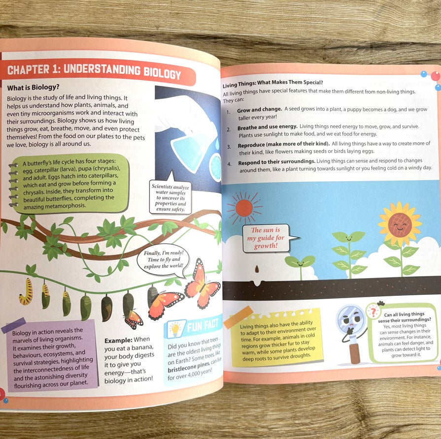 Why do we need food to grow? How do plants make their food? Why are animals so different from one another? Dive into the world of biology to uncover the answers! This books reveals how living things grow, survive and interact in the world around us. Through fun facts, colourful illustrations and exciting activities, it shows how biology is part of our everyday lives. Perfect for curious minds and future biologists!