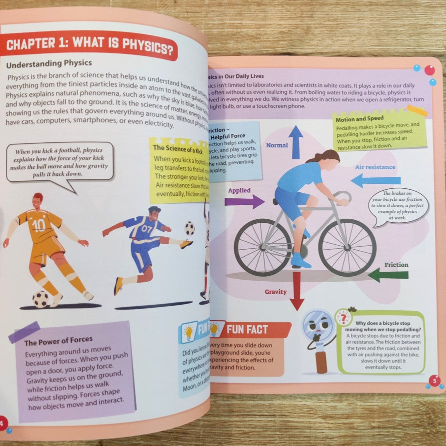How do we see light? Why do objects move? What makes the sound you hear? Dive into the fascinating world of physics to discover how forces, energy and motion, shape our everyday lives! With fun experiments, amazing facts, and colourful illustrations, this book brings physics to life and shows how science is at work all around you. Perfect for young scientists and curious minds ready to explore the wonders of the physical world!