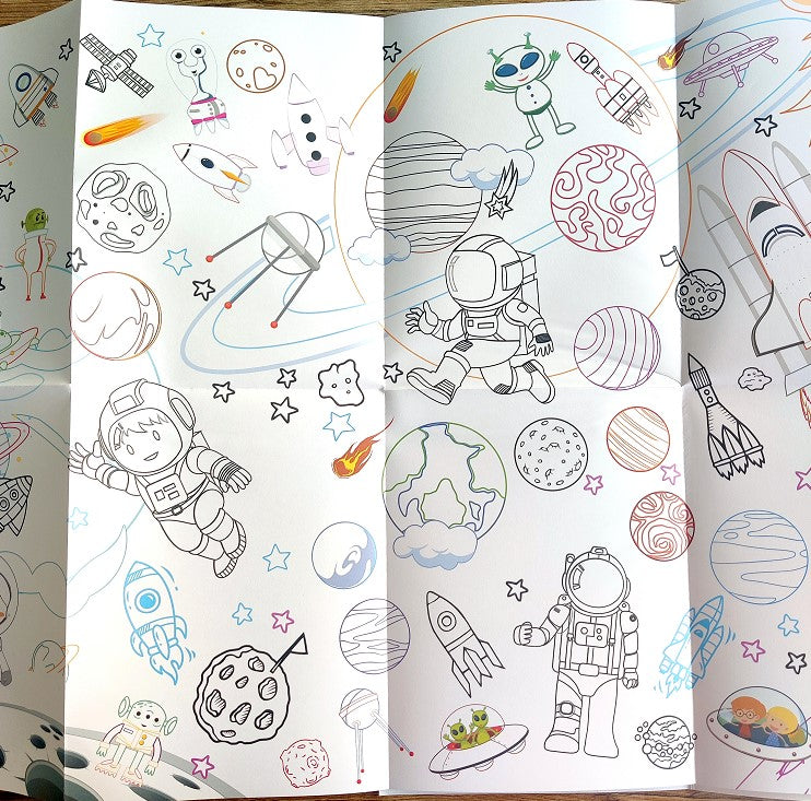 - One large paper sheet for coloring having various images of space worlds - 33.2 x 21.3 in