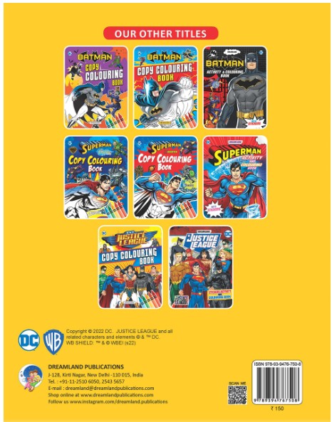 The 'Justice League' - a team of the world's most powerful superheroes-is dedicated to fighting for justice. The "Justice League Copy Colouring Book" is filled with kids' favourite characters, including Superman, Batman, Wonder Woman, and more. This colouring book will provide kids hours of fun through their creative expression.