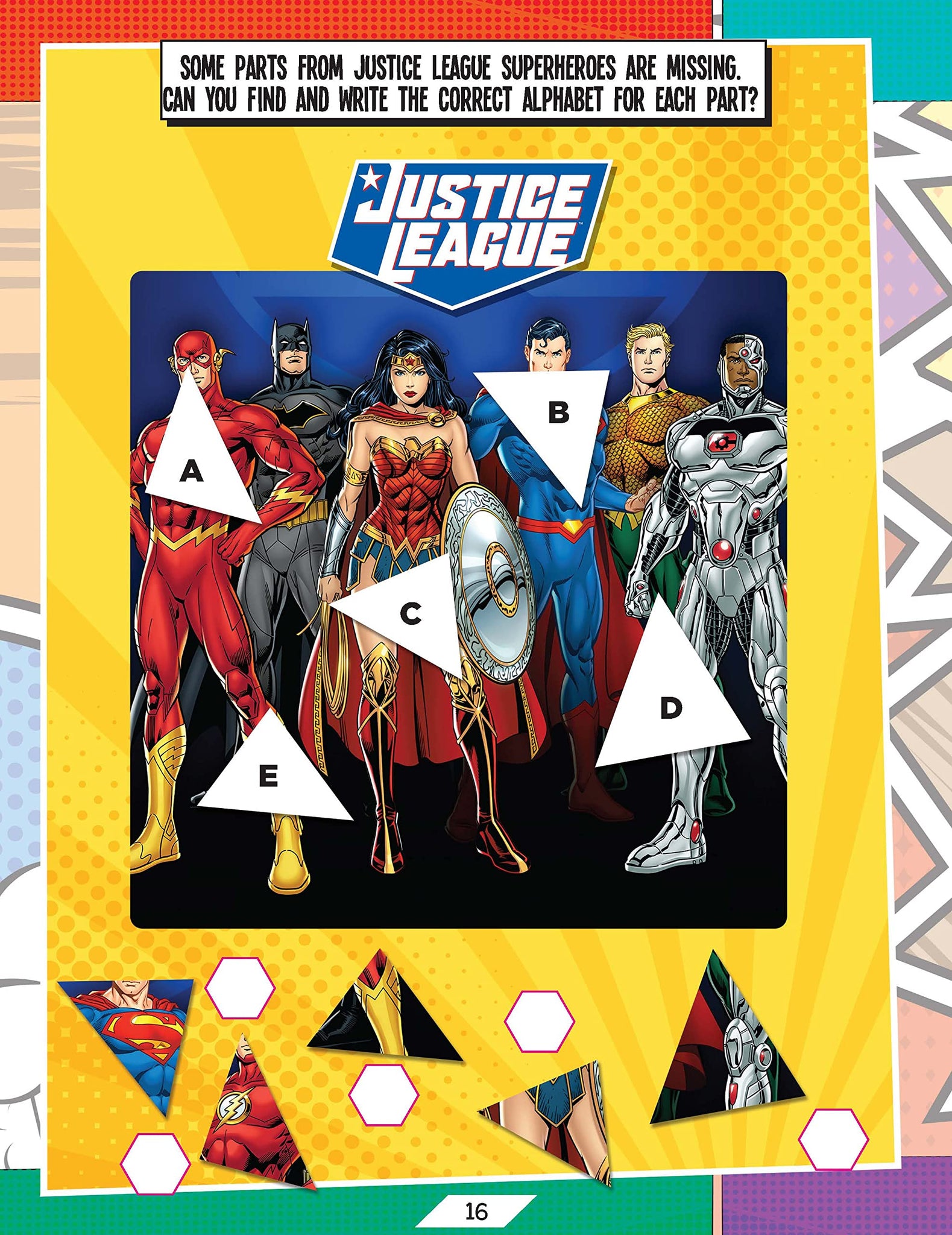 Let the children enjoy some exciting adventures with their superheroes through the "Justice League Activity and Colouring Book". This book includes wonderful colouring pages, mind-blowing activities, and colourful stickers. It will delight kids for hours at home or on the go with mazes, puzzles, colouring pages, and educational activities.