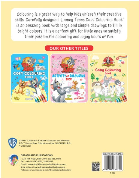 Colouring is a great way to help kids unleash their creative skills. Carefully designed 'Looney Tunes Copy Colouring Book' is an amazing book with large and simple drawings to fill in bright colours. It is a perfect gift for little ones to satisfy their passion for colouring and enjoy hours of fun.