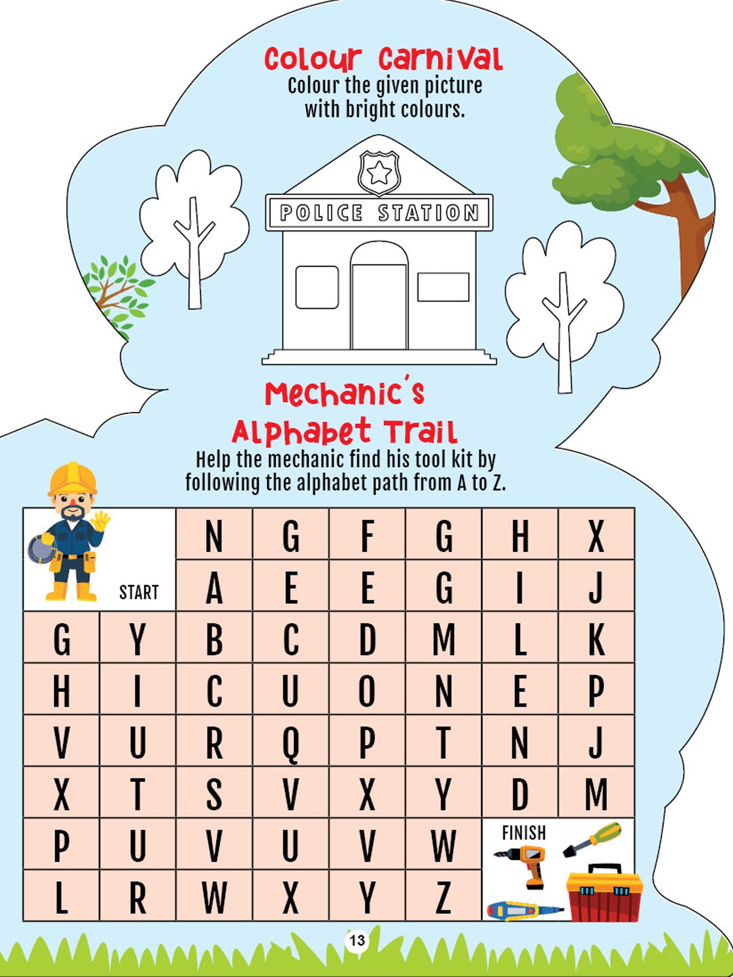 Welcome to a captivating world of learning and exploration with Helpers Wonderland Shape-cut Activity Book. 'Helpers Wonderland' introduces the unsung heroes who make our world brighter. Engaging colouring activities ignite imagination, while brain-teasing challenges stimulate cognitive growth. Moreover, this book is adorned with fascinating facts, encouraging inquisitive minds to discover as they play. Get ready to explore, learn, and create, and let the magic begin!