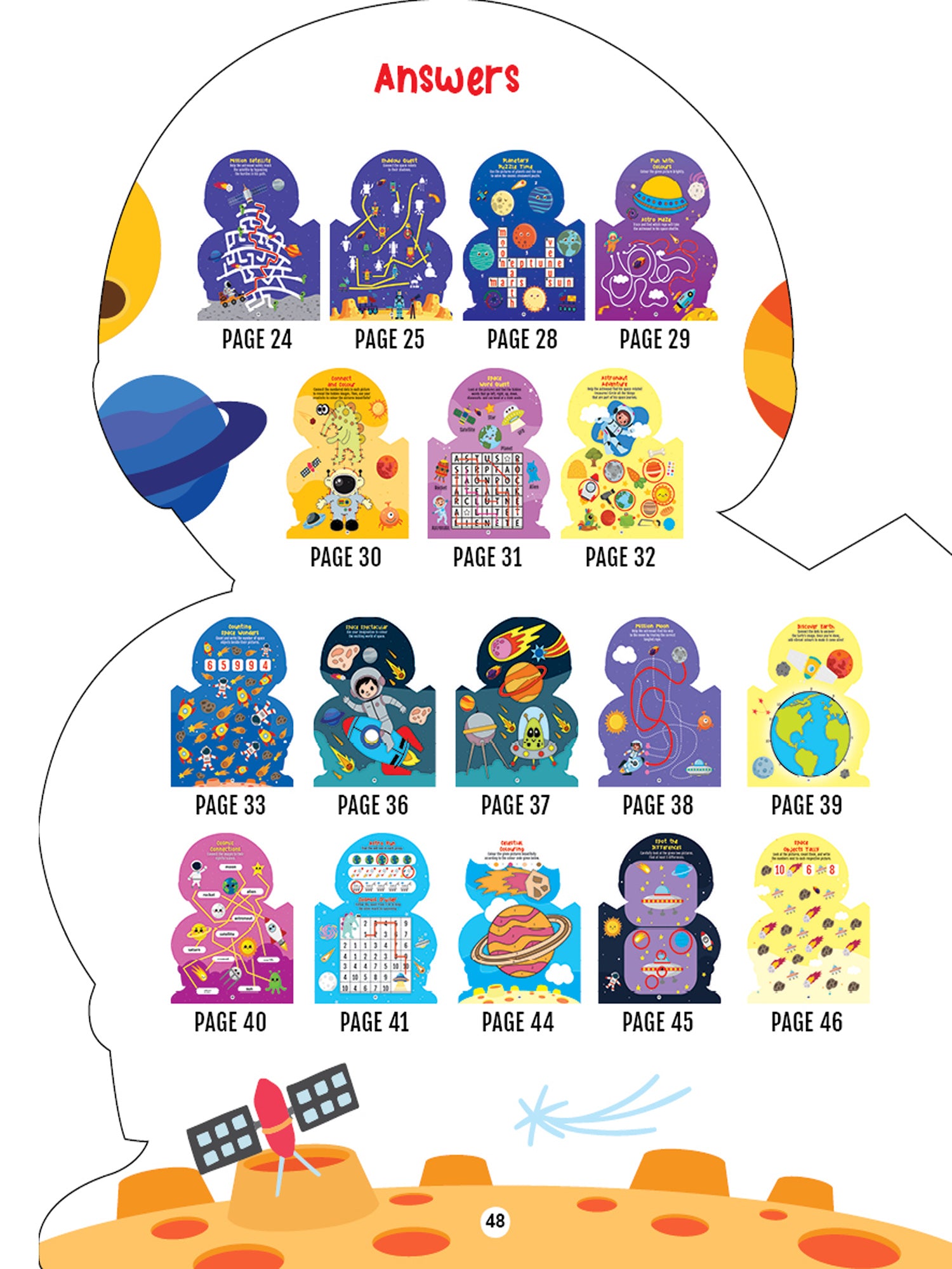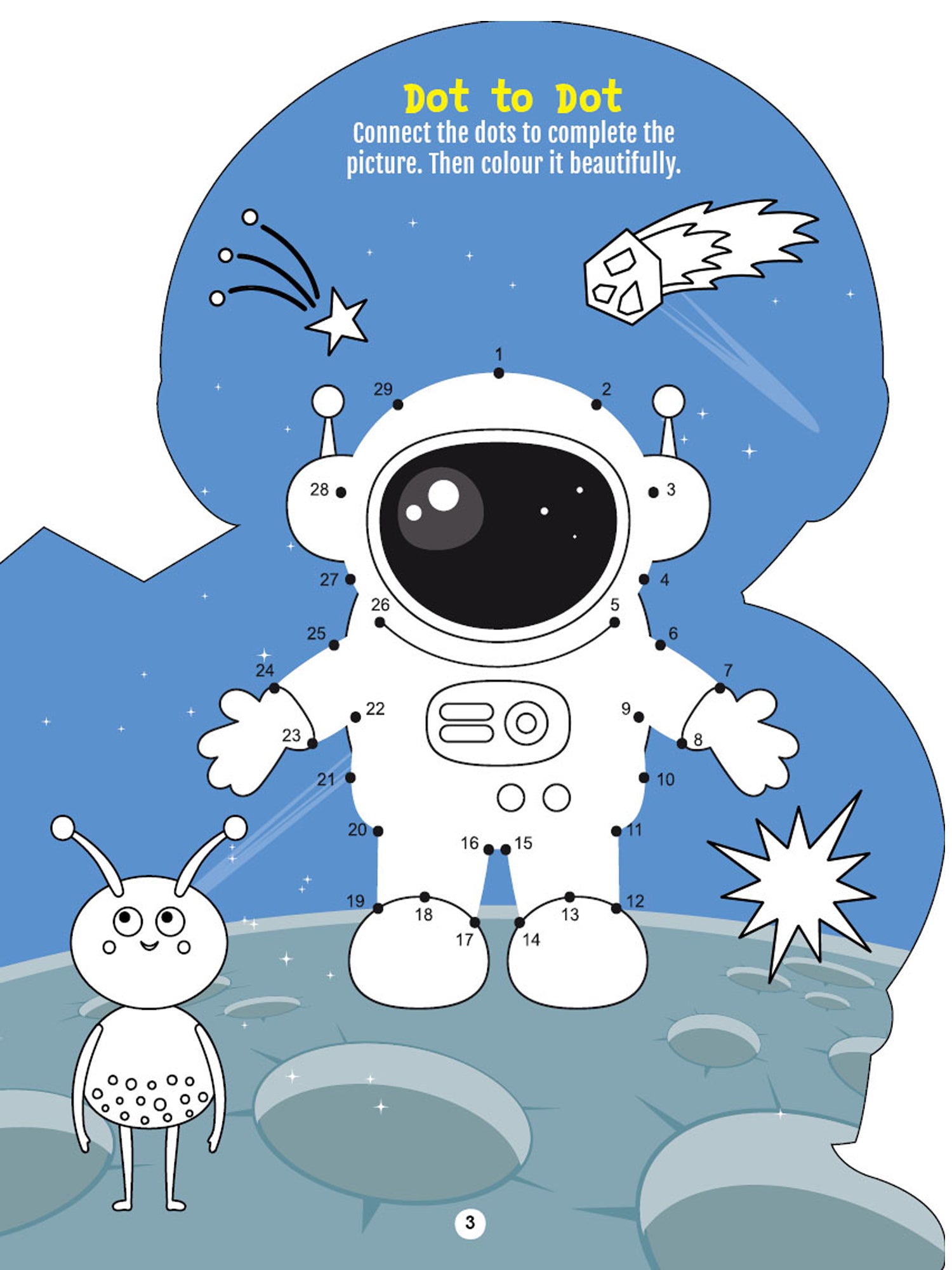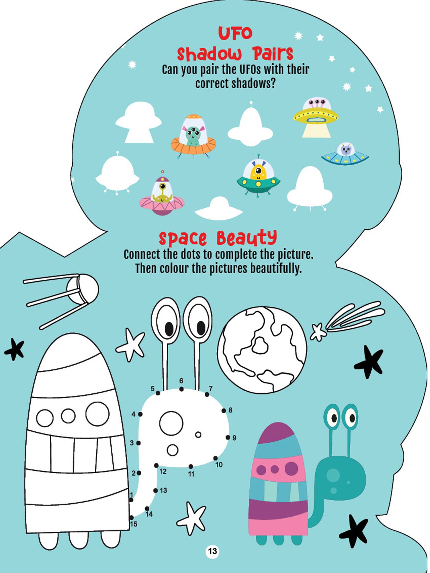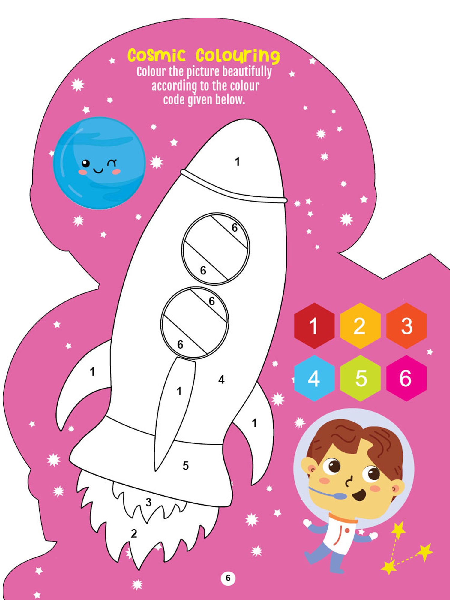 Welcome to a captivating world of learning and exploration with Space World Shape-cut Activity Book. 'Space World' launches you into cosmic exploration. Engaging colouring activities ignite imagination, while brain-teasing challenges stimulate cognitive growth. Moreover, this book is adorned with fascinating facts, encouraging inquisitive minds to discover as they play. Get ready to explore, learn, and create, and let the magic begin!