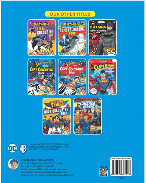 Superman is one of the best superheroes loved by all children. He saves a lot of people from villains with his special powers. An ideal gift for superhero admirers, "Superman Copy Colouring Book" is an amazing colouring book to wander in the amusing world of Superman. This colouring book will provide kids hours of fun through their creative expression.