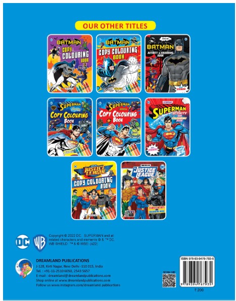 Superman is one of the best superheroes loved by all children. He saves a lot of people from villains with his special powers. An ideal gift for superhero admirers, "Superman Copy Colouring Book" is an amazing colouring book to wander in the amusing world of Superman. This colouring book will provide kids hours of fun through their creative expression.
