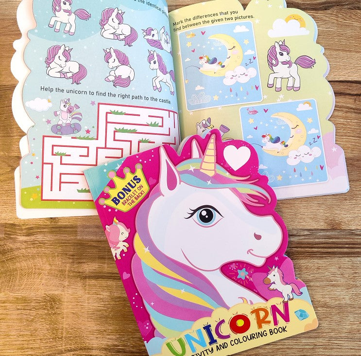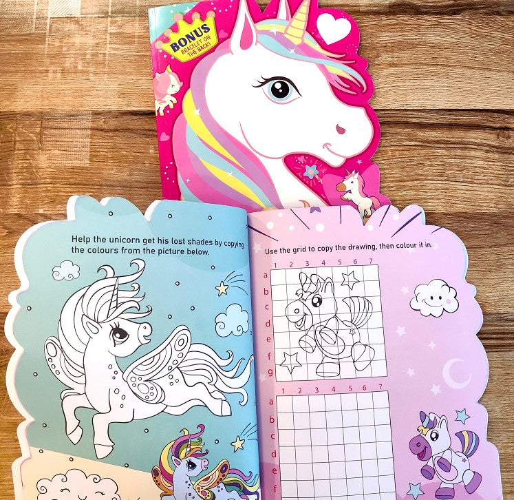 Unicorn Activity and Colouring Book - Die Cut Animal Shaped Book