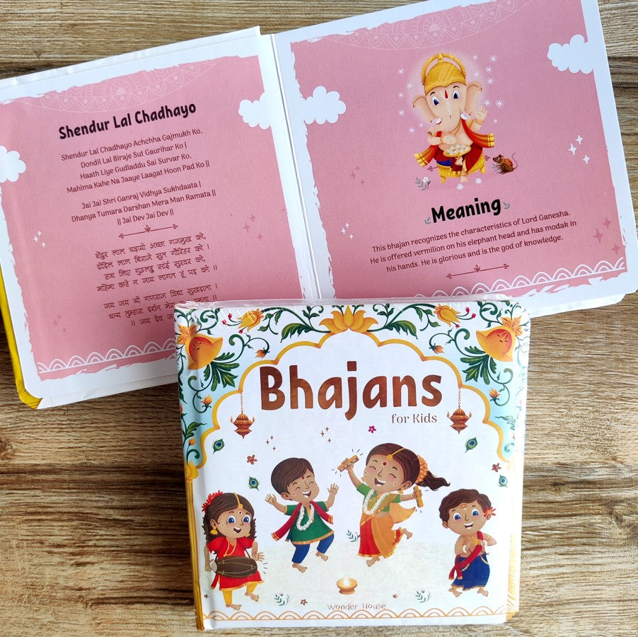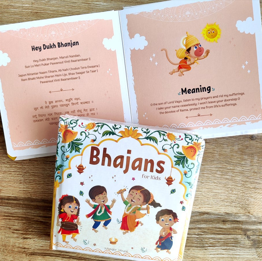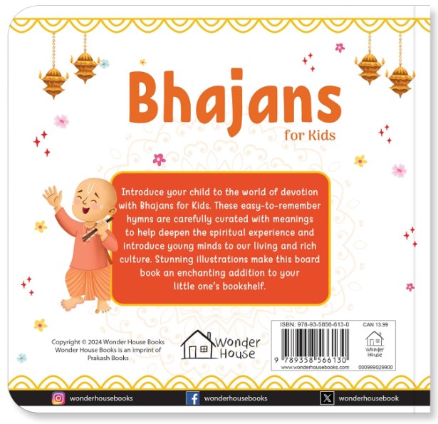 Open the door to the world of devotion for your child with "Bhajans for Kids", a delightful board book designed to infuse the young mind with the beauty of soulful hymns. Each bhajan in this brightly illustrated book is thoughtfully paired with its meaning, to help deepen the spiritual experience and introduce young minds to our living and rich culture. As your child absorbs the rhythmic melodies, they will also embark on a journey of understanding, fostering a sense of cultural awareness and appreciation.