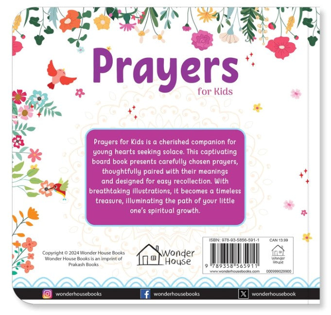 Illuminate the path of your child's spiritual growth with this exceptional board book, " Prayers for Kids", which is more of a cherished companion that tenderly embraces their young hearts, than simply being a book. This captivating board book presents carefully chosen prayers, thoughtfully paired with their meanings and designed for easy recollection. Breathtaking illustrations grace every page, turning this board book into a timeless treasure that captures the imagination of little hearts.