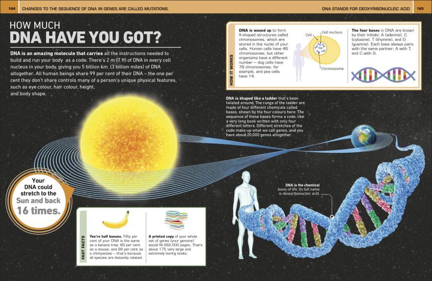 Did you know that Chimpanzee skin has the same number of hairs as humans? Or that you regrow your outer layer of skin 700 times in your lifetime! Or that your DNA can stretch to the sun and back - not once - but 16 times? If these facts have already blown your mind, then wait until you read all 1000 facts!