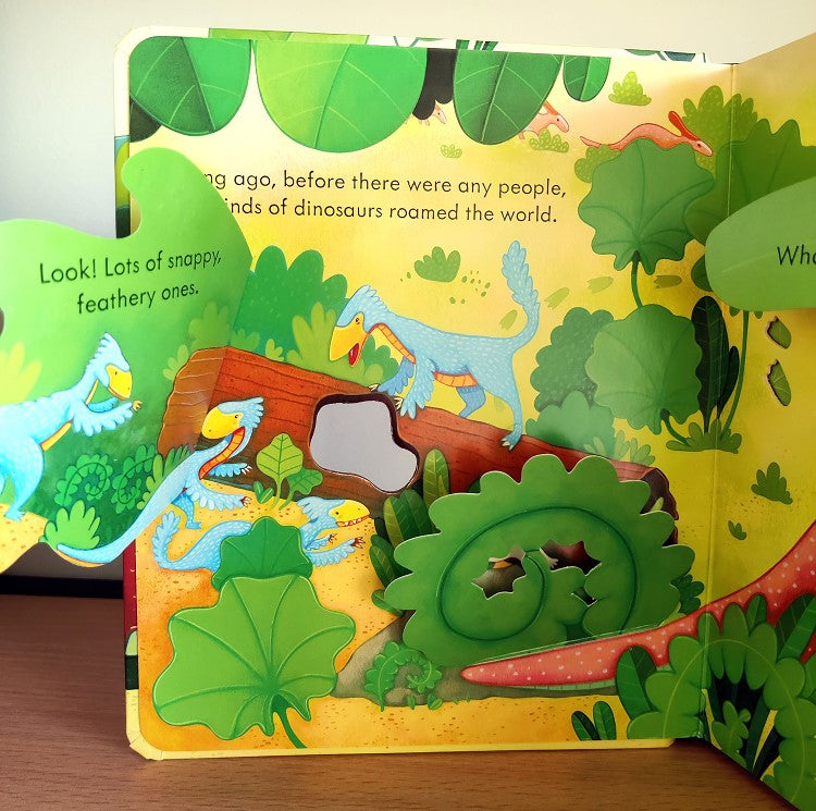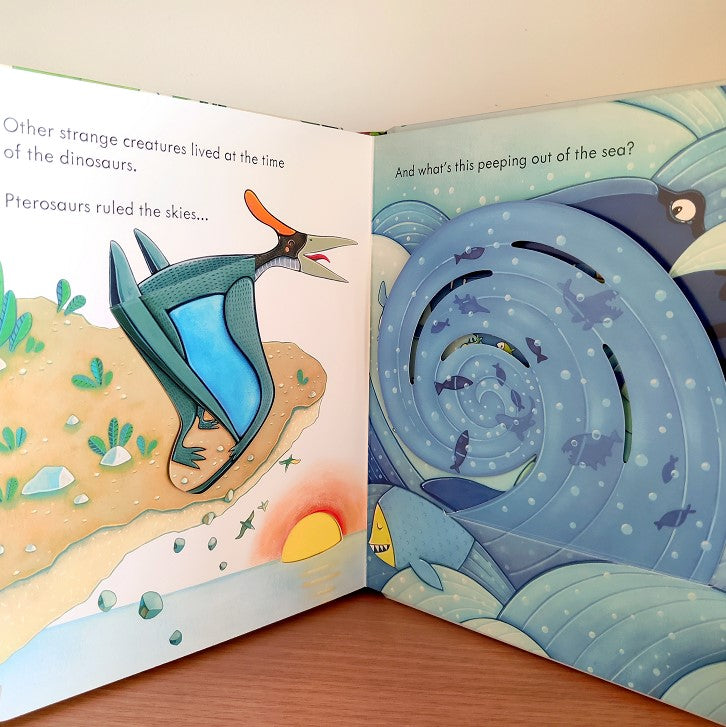 Children can lift the flaps and peep through the holes to see a dinosaur egg hatching or trace the outlines of T. Rex's teeth, and find out about spiky dinosaurs, the biggest dinosaurs and dinosaurs from the sea.