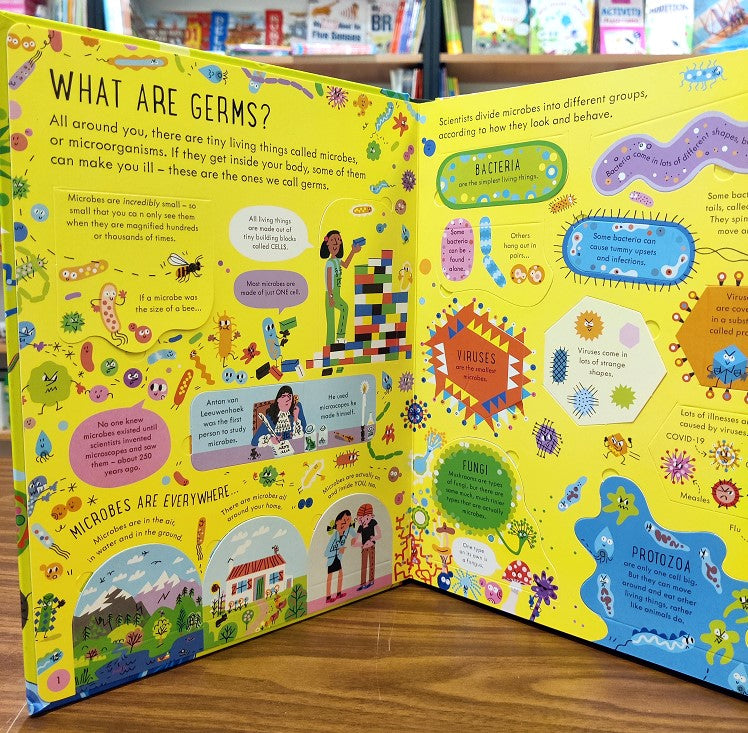 Explore the microscopic world of bacteria, viruses and other microbes with this fascinating lift-the-flap book. Discover how germs spread, how the immune system works, the amazing vaccines and antibiotics humans have created, and much more.