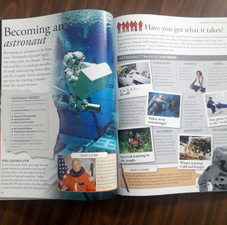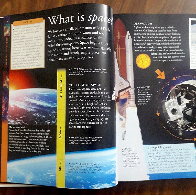 The most up-to-date images from space agencies such as NASA and ESA combine with info panels, timelines, interviews, diagrams, and activities you can do at home to help you understand the majesty and wonder of space. Learn about the space race, the Apollo moon landings, the Voyager craft that first probed the outer planets and have now left the solar system, the Hubble telescope, and the international space station (iss) - The state-of-the-art Science laboratory orbiting Earth - as well as future missions, space tourism, and the latest discoveries in the furthest reaches of our galaxy.