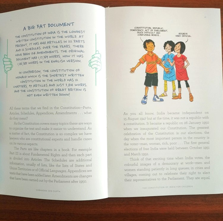 The document didn't only lay down the law but united India with a vision that took two years, eleven months and seventeen days to realise. Subhadra Sen Gupta captures the many momentous occasions in Indian history that led to its making in The Constitution of India for Children. Populated with facts and dotted with cheerful illustrations, this book provides answers to innumerable questions asked over the years.