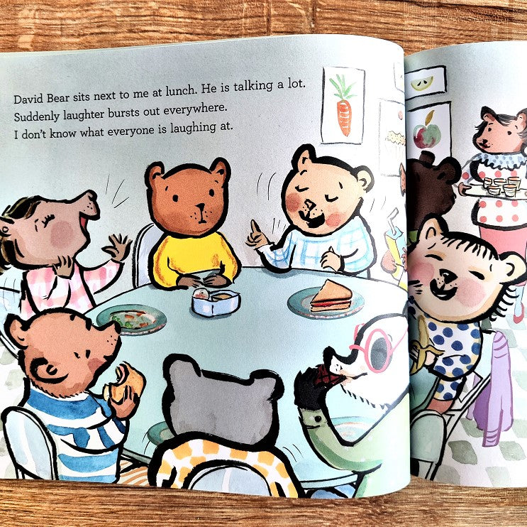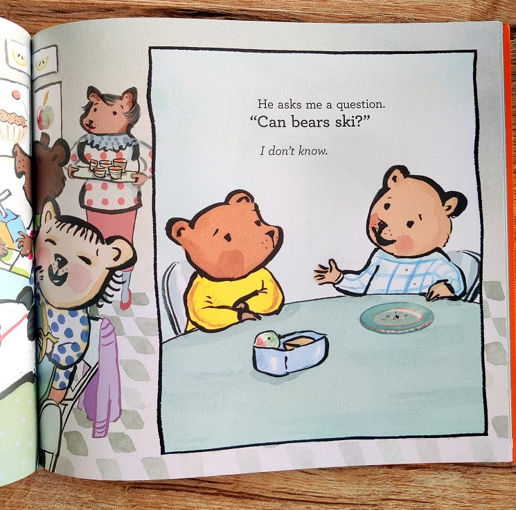 Boy Bear cannot hear Dad Bear coming to wake him up in the morning. He only grasps little bits of what his teacher and friends say to him. And, all the time, Boy Bear keeps hearing the question, "Can bears ski?" What does it mean? With the support of Dad Bear, Boy Bear visits an audiologist and gets hearing aids. And suddenly, he understands... "CAN YOU HEAR ME?".