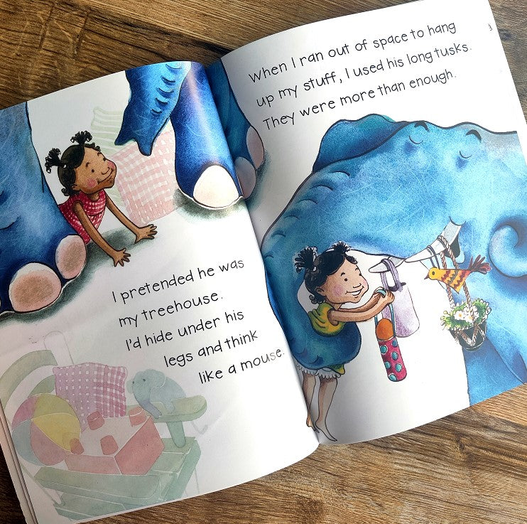 Young readers will love the absurdity of sharing a bedroom with a huge elephant while parents enjoy the subtle message in My Blue Elephant.