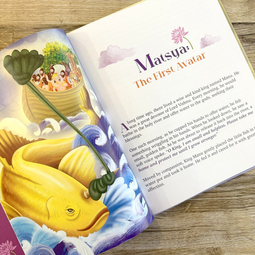 Dashavatar Stories introduces children to the fascinating tales of Lord Vishnu’s ten avatars - from Matsya, the fish, to Kalki, the warrior of the future. It is more than just a storybook - it is a gentle, imaginative guide to Indian culture and values. Perfect for bedtime reading, these stories teach timeless values like courage, kindness, wisdom, and balance in a fun and meaningful way.
