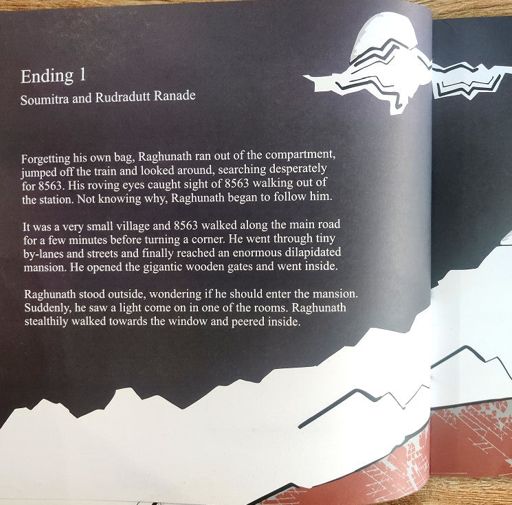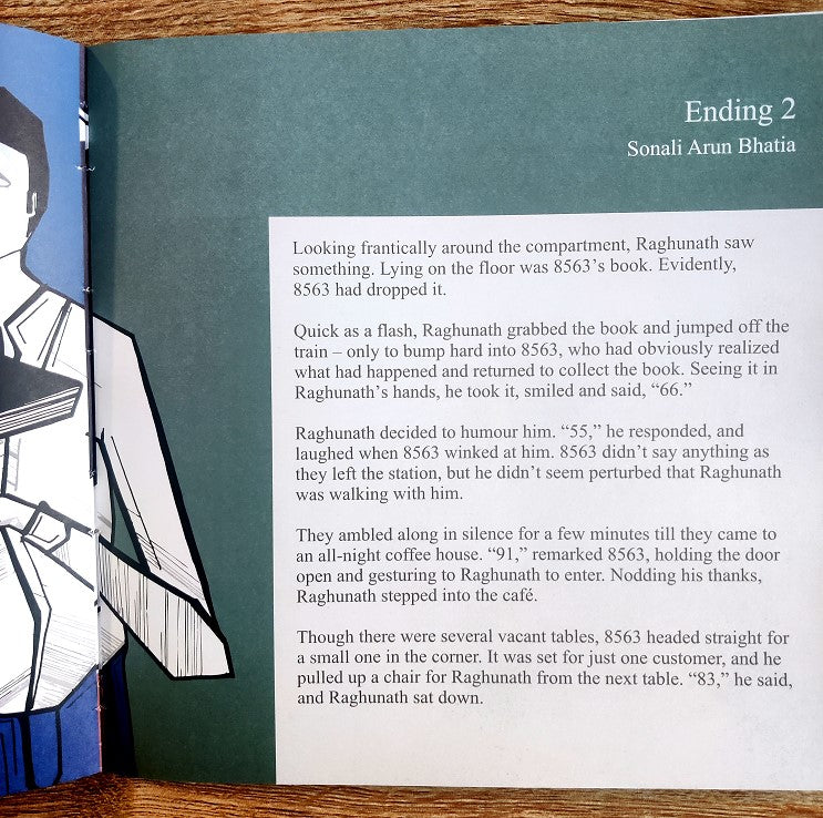 Raghunath boards a train from Mumbai to Vajraghat, and shares his compartment with a stranger. Raghunath’s curiosity is piqued when the mysterious stranger starts speaking in numbers. This original story by Soumitra Ranade and Rudradutt Ranade features three alternative endings by Sonali Arun Bhatia, Archana Rao-D’Cruz, and Mira Desai.