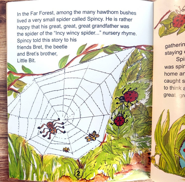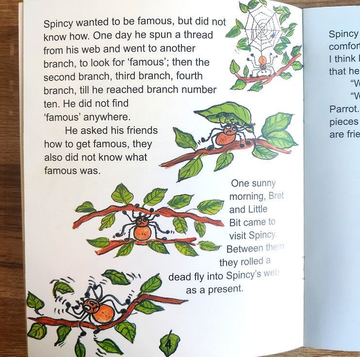 Spincy Spider lived in the thorny bushes. He wanted to be famous. A nice yarn about Spincy and his friends and what it means to be famous.