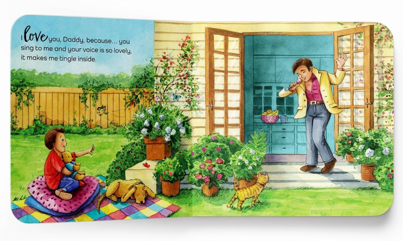 Dads are most protective for their kids, though they appear to be rough and tough. Introduce young ones to the amazing nature of fathers with this endearing board book from the heartwarming I Love You series. With captivating illustrations and narration, this book instills in small kids a sense of love and affection towards their dads. From cuddles to playtime, the books in this series celebrate the bond between parents, children, and pets. Enjoy some fun time with your daddy!