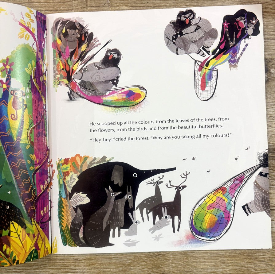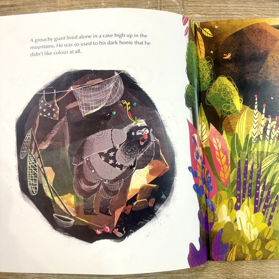 What happens when a grouchy giant decides to scoop all colour out of the world - from the trees and flowers, from the birds and animals, from the fish and the waters?