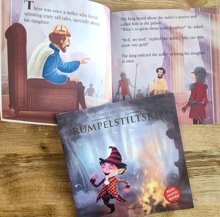 This is a beautiful retelling of the classic children fairy tale - Rumpelstiltskin. With vibrant, captivating illustrations and simple text, it will spark the child's imagination, develop speech and Language skills and encourage to read books.