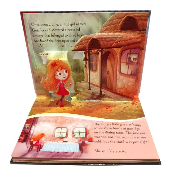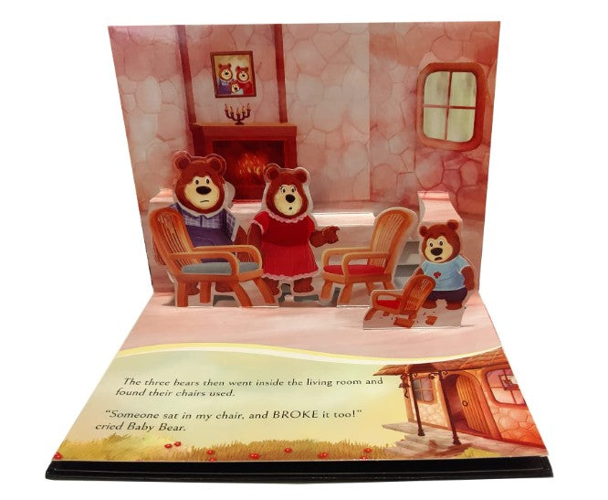 Join Goldilocks and explore the empty cottage of the three bears with this interactive pop-up book!