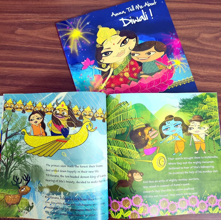 "Amme Tell Me" is a charming and informative series of children's books that introduces the major Hindu festivals and figures to young readers, and are perfect for families wanting to share stories of Hinduism with their children or for educators looking for resource on the Hindu culture for their students. Written in rhyme with vivid, captivating illustrations, this series brings Hindu mythology to its readers in a fun and non-preachy way. The Series has ten books on the festivals of Holi, Diwali, and on the Hindu gods Krishna, Hanuman and Ganesha.