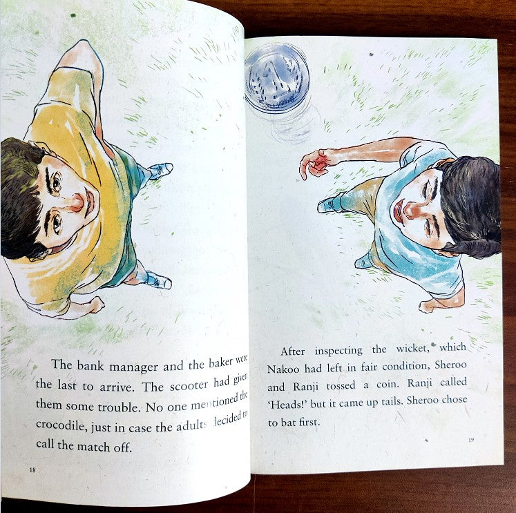 Ranji's team finds an unexpected opponent - a nosy crocodile - when they play a cricket match against the village boys. Annoyed at the swarms of boys crowding the riverbank and the alarming cricket balls plopping around his place of rest, Nakoo the crocodile decides to take his revenge.