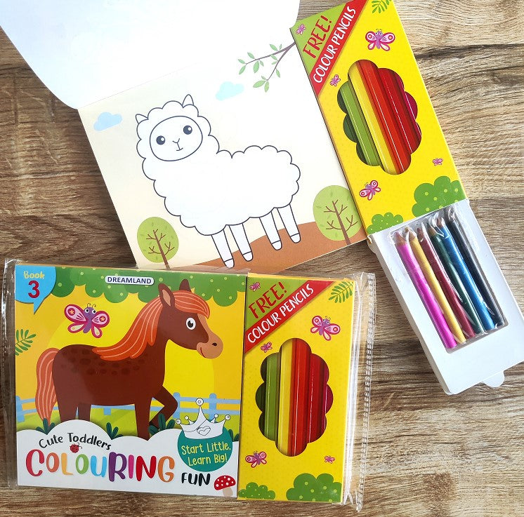 Cute Toddlers Colouring Fun Book 3 with 6 Colour Pencils