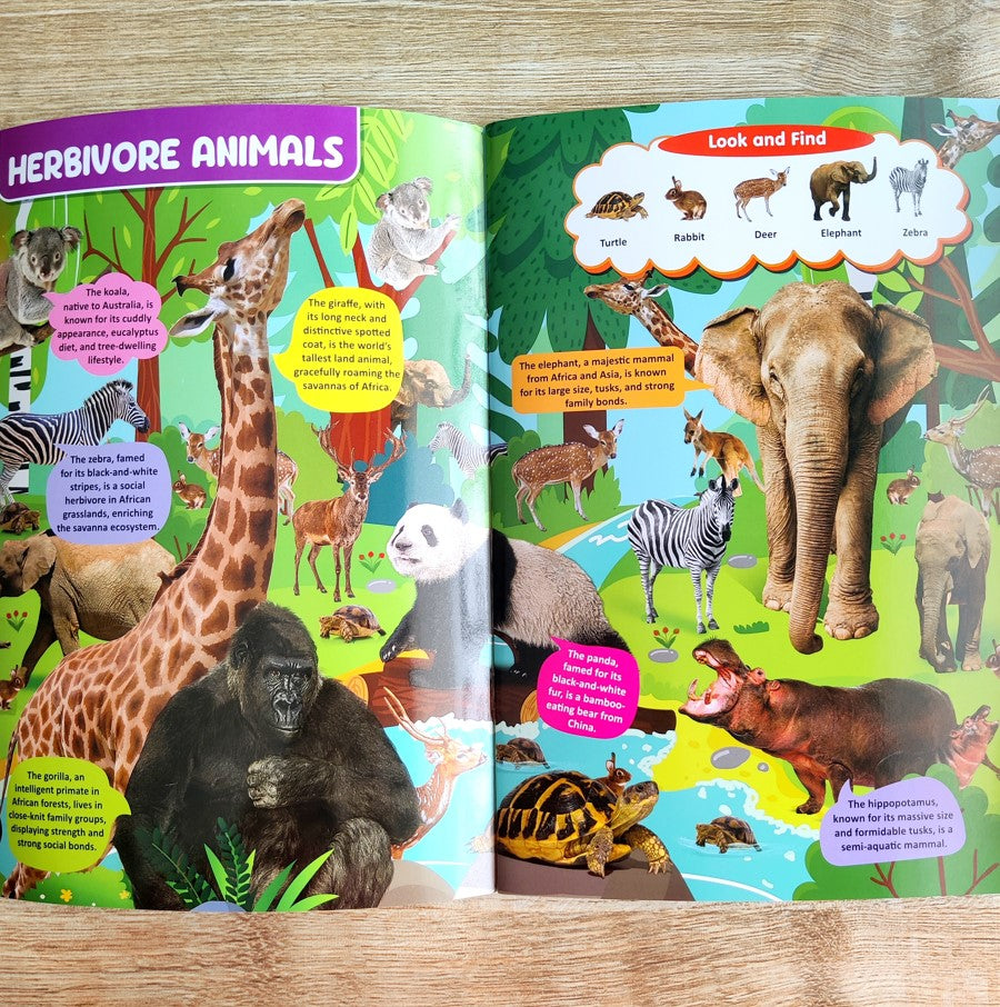 Discover the Wonders of Wildlife with Animal Kingdom! Explore the incredible world of animals with Animal Kingdom! This captivating book invites children to journey through diverse habitats and learn about amazing wildlife through engaging collages and hidden picture challenges (Can you spot me?).