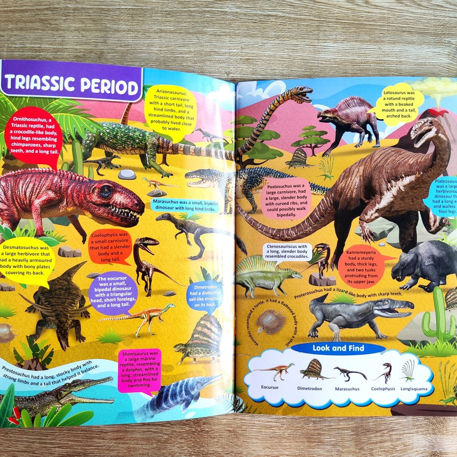 Travel Back in Time with Dinosaur World! Journey to the prehistoric era with Dinosaur World! This engaging book takes children on an adventure to discover the world of dinosaurs through fascinating collages and hidden picture challenges (Can you spot me?).