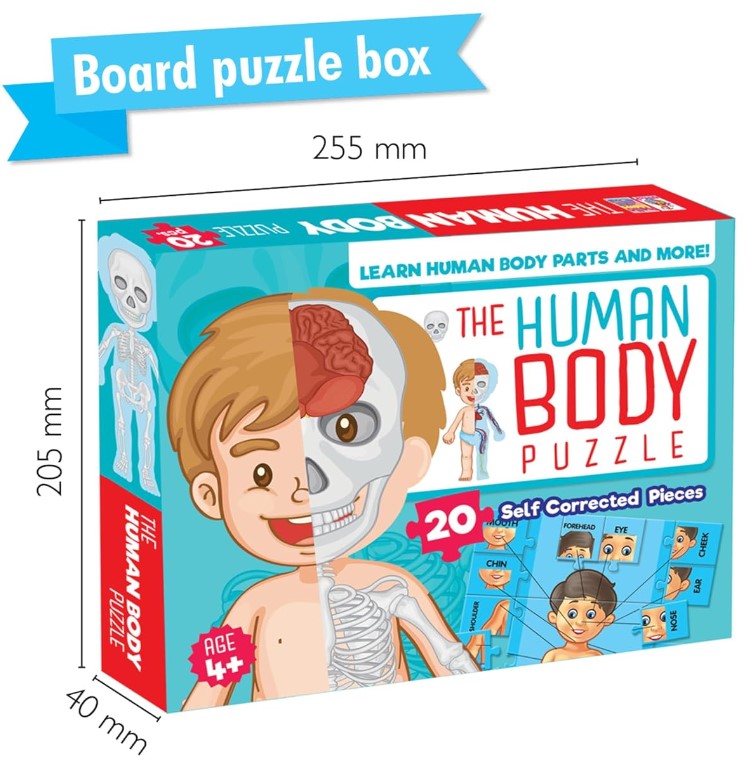Enhance your child's learning with our human body puzzle box, consisting of 20 pieces for an engaging and prolonged activity. Through matching the puzzle pieces, your child will develop a better understanding of the human body while utilizing their visual memory skills.